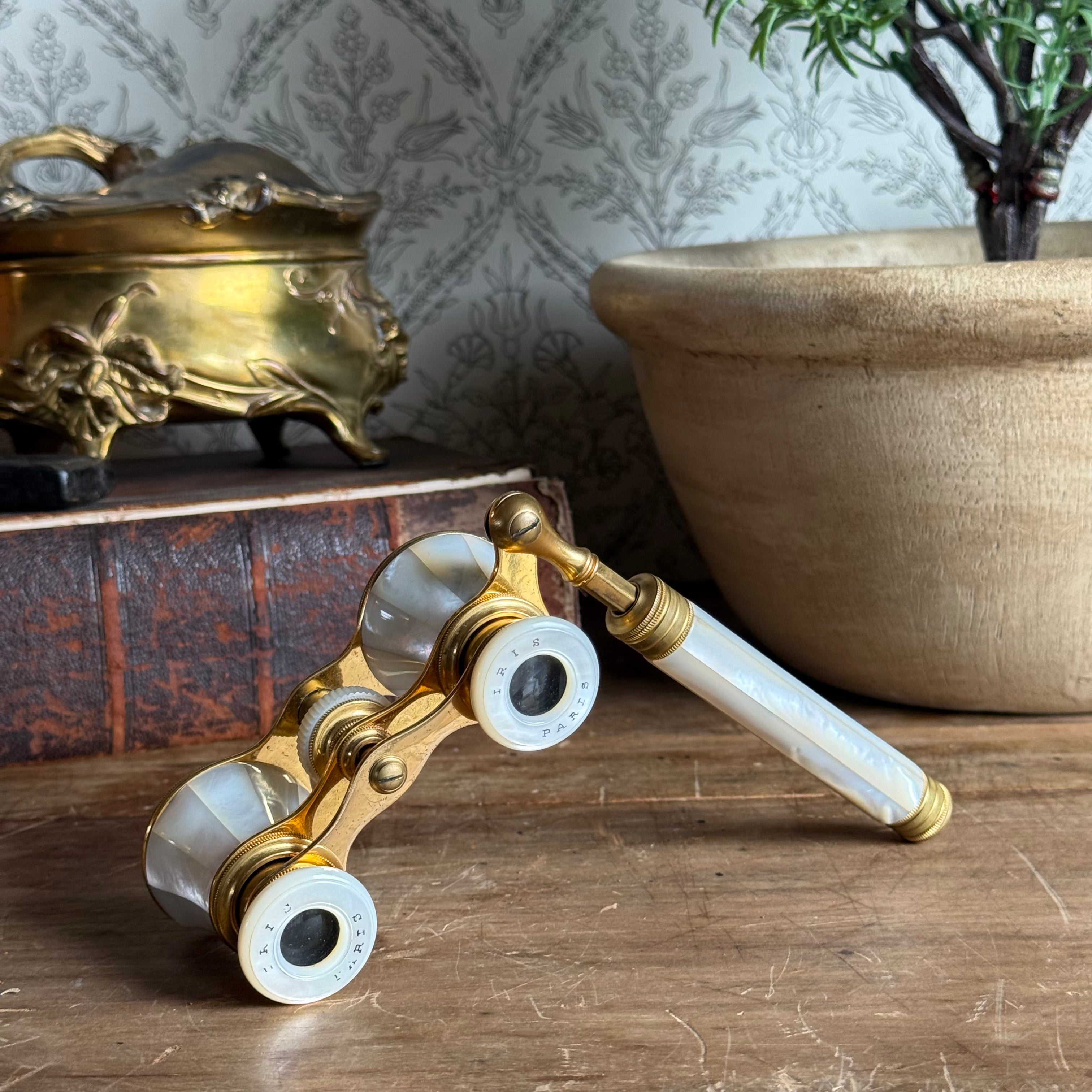 19th Century Antique French Brass & Mother of Pearl Opera Glasses