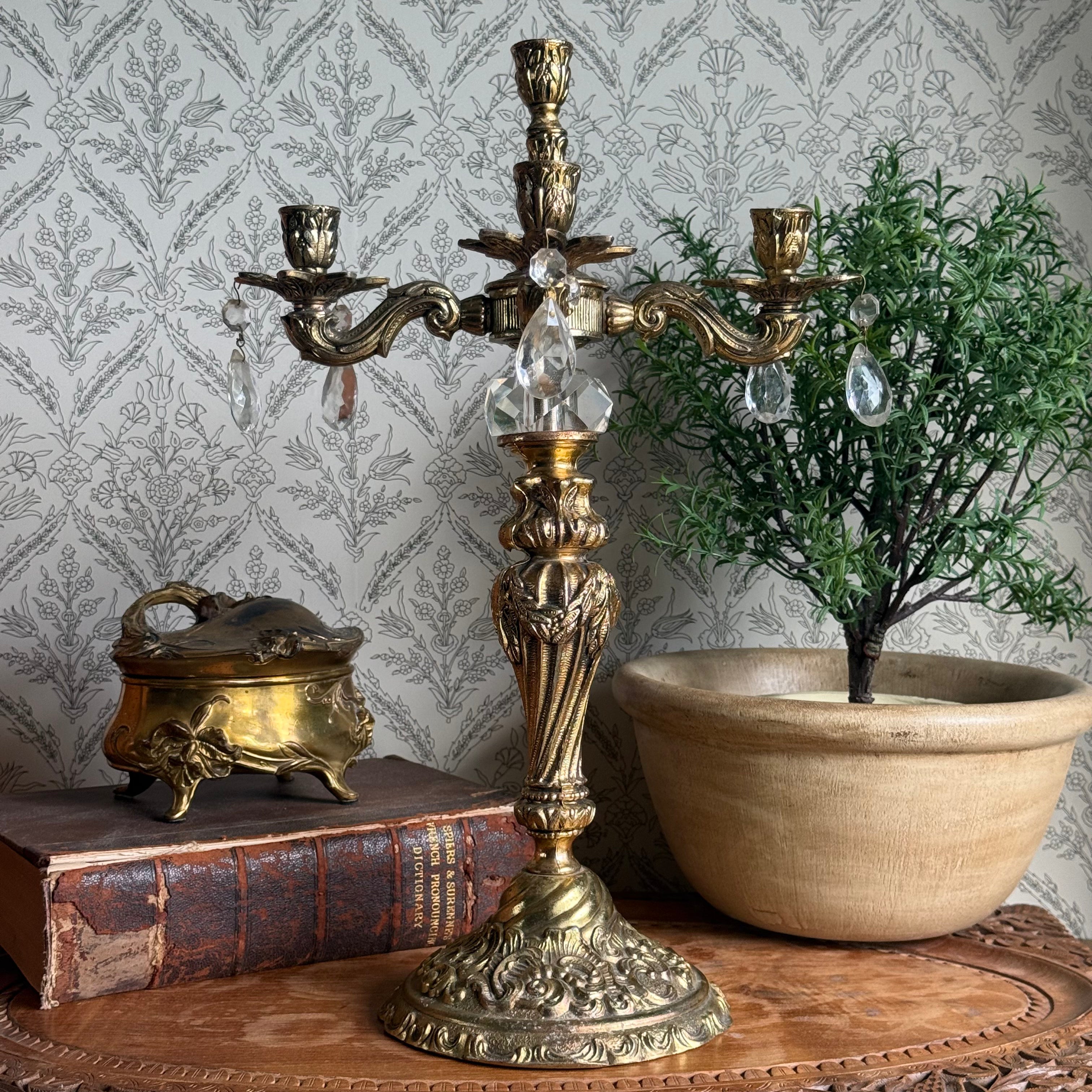 Late 19th Century Ornate Gilded Metal Four Arm Candelabra